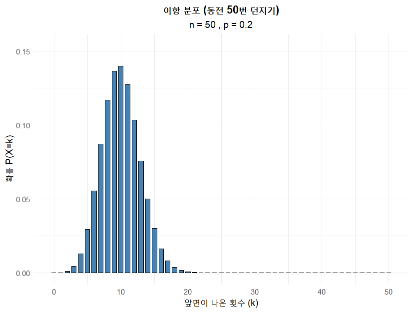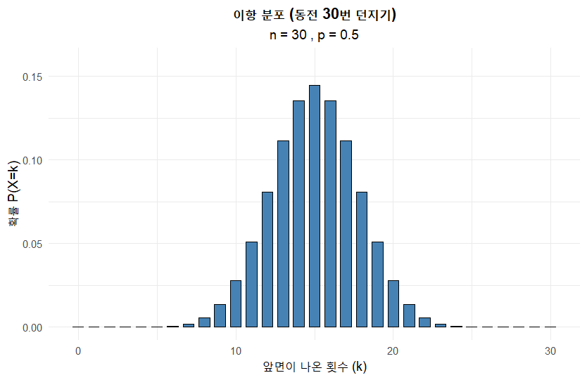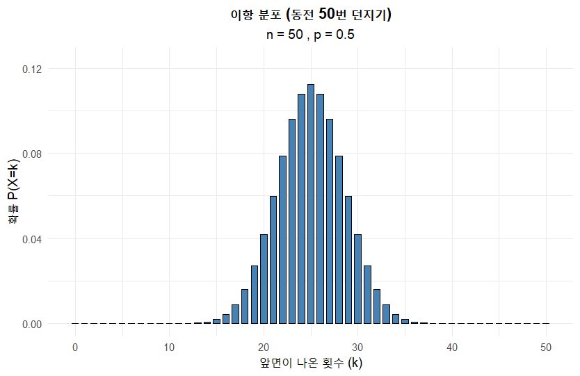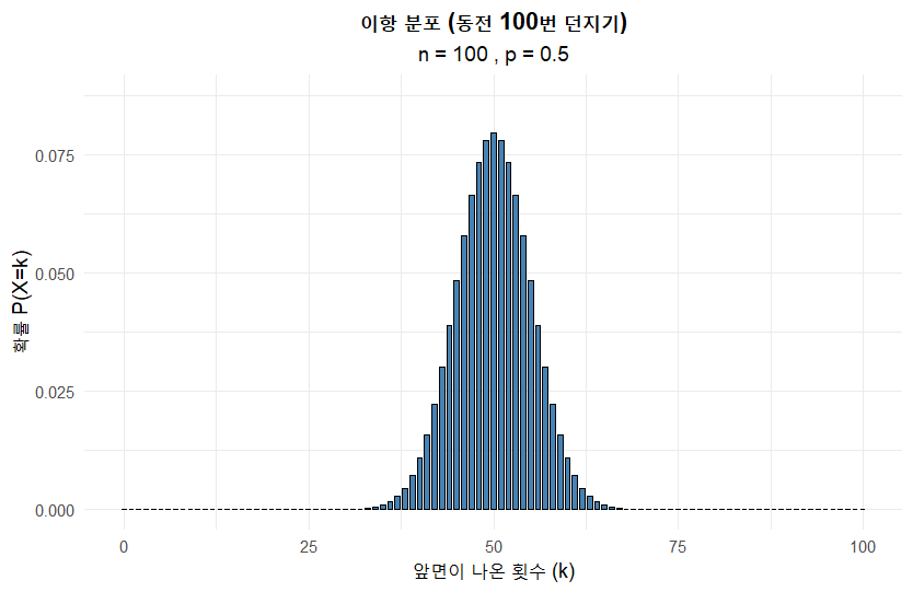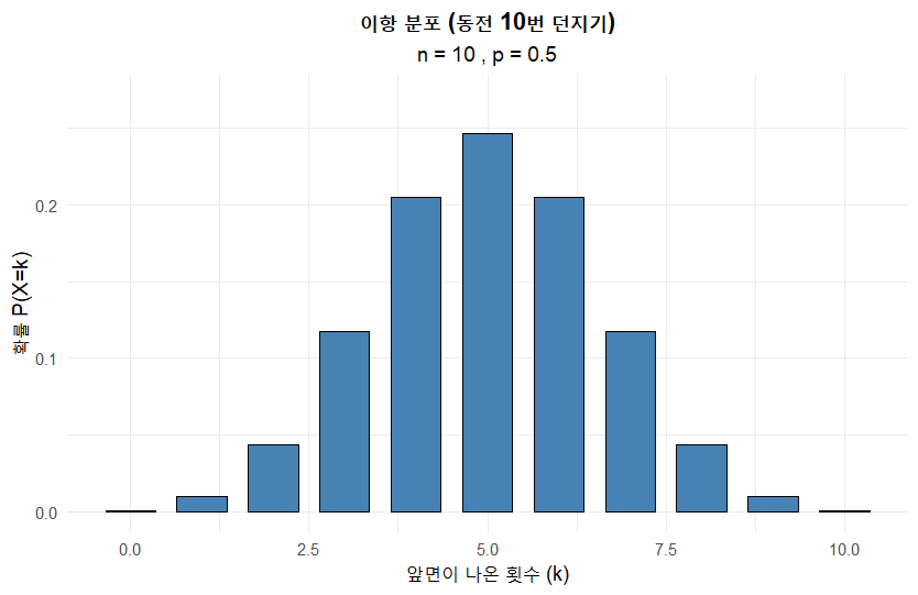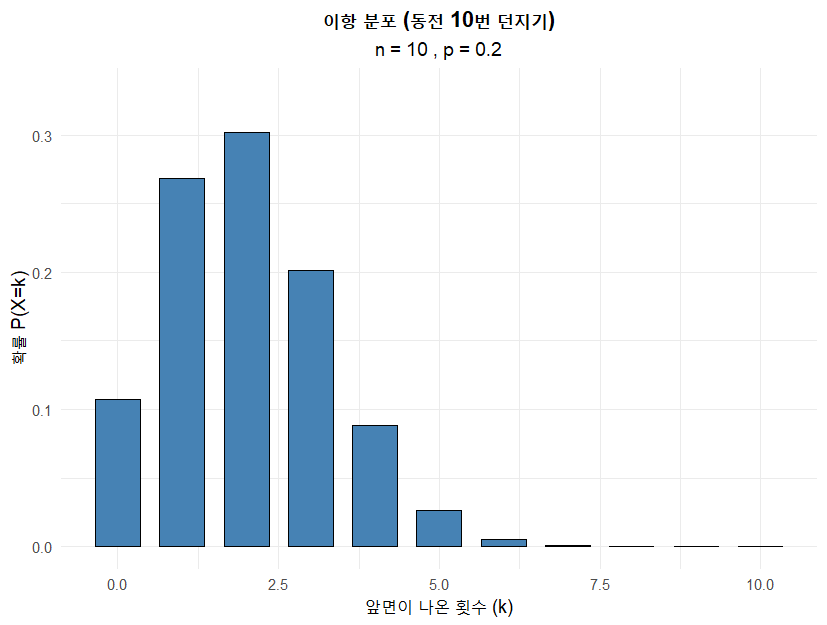 동전던지기 예시의 이항분포 함수는 아래와 같습니다.